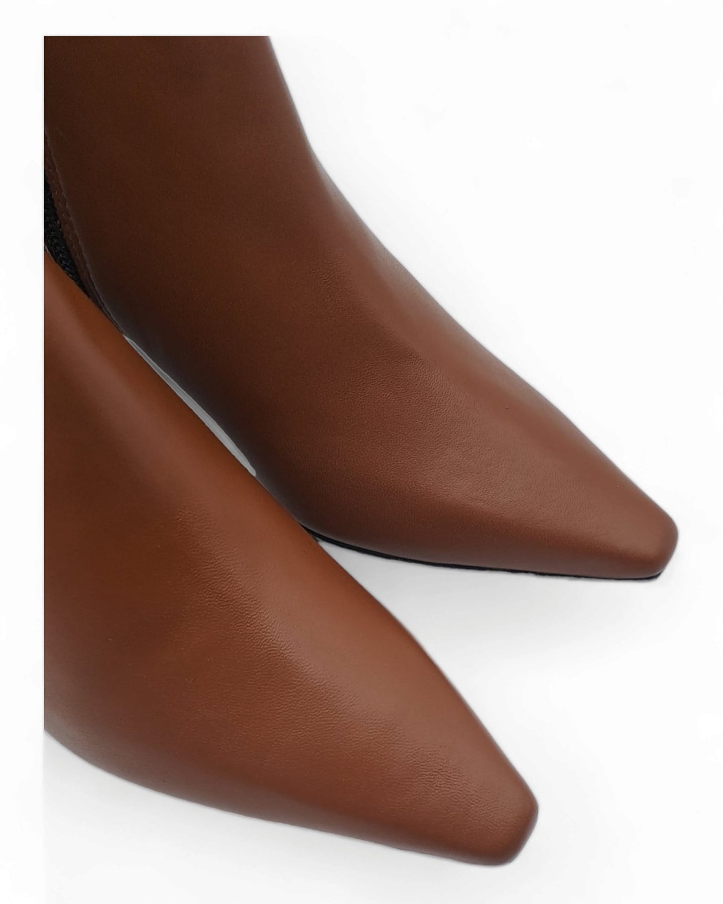 Tronchetto Punta Quadrata Nappa Focus Brandy a punta con taglio laterale e impuntura a vista tinta su tinta.