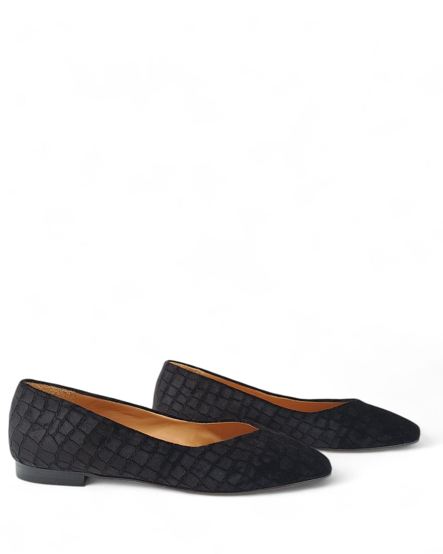 Ballerina scollo a V in velluto stampa  cocco nero.