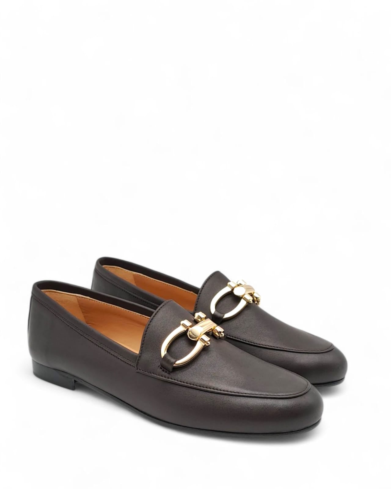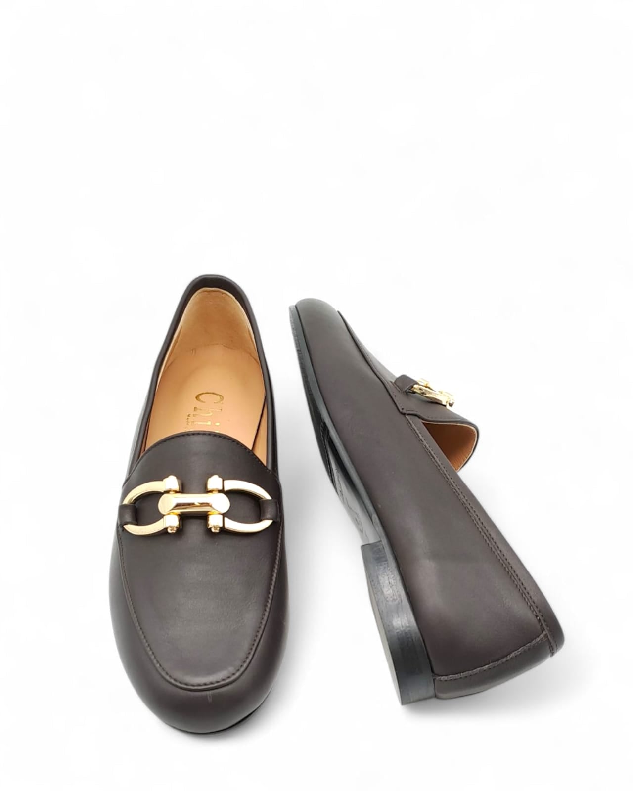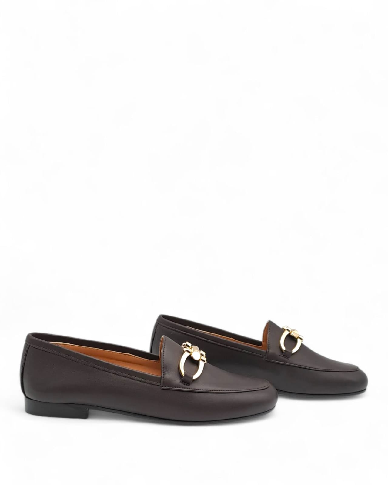 Mocassino realizzato in pelle testa di moro con morsetto dorato . . Contattaci