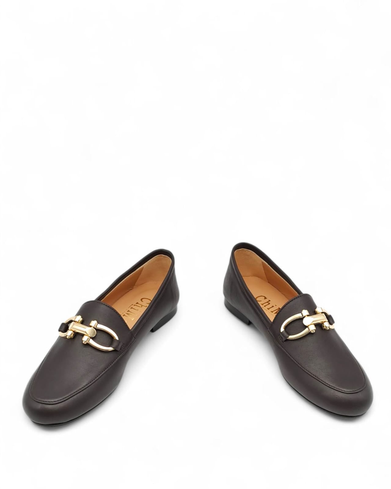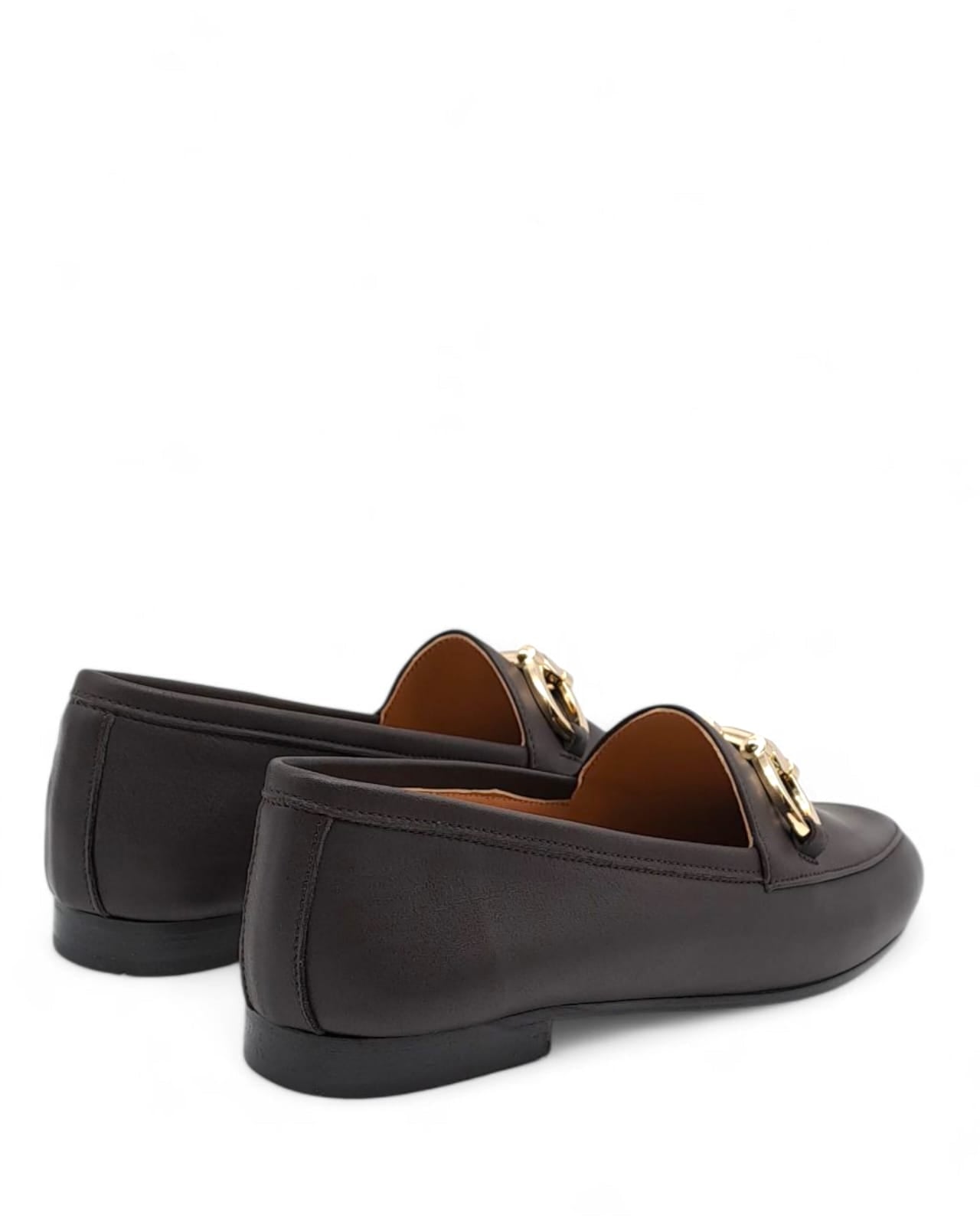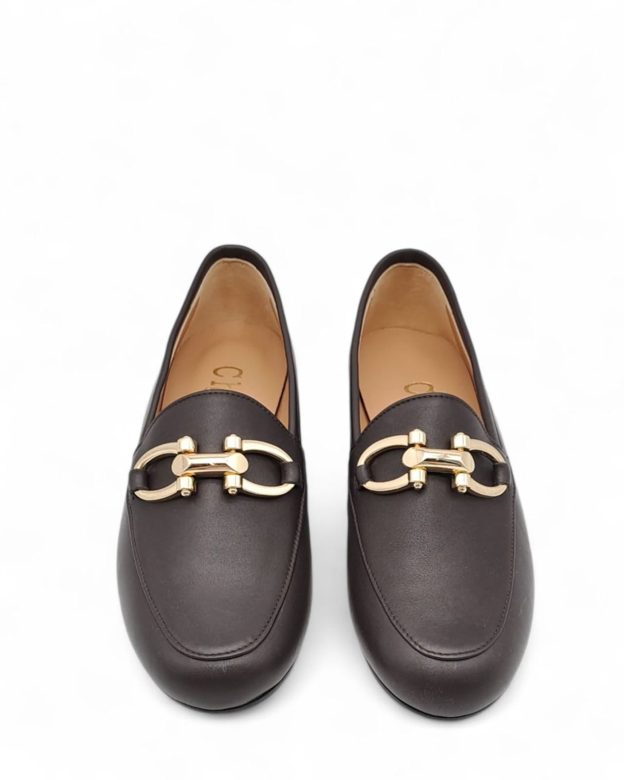 Mocassino realizzato in pelle testa di moro con morsetto dorato . . Contattaci