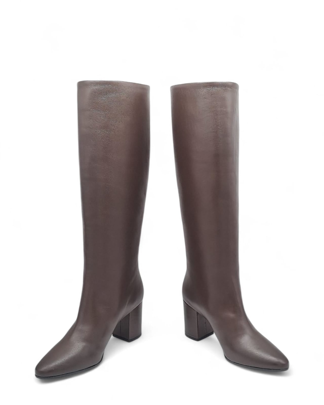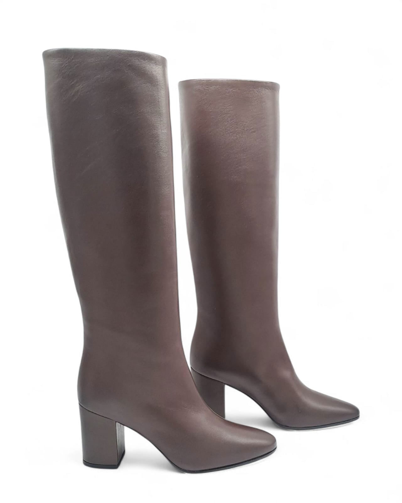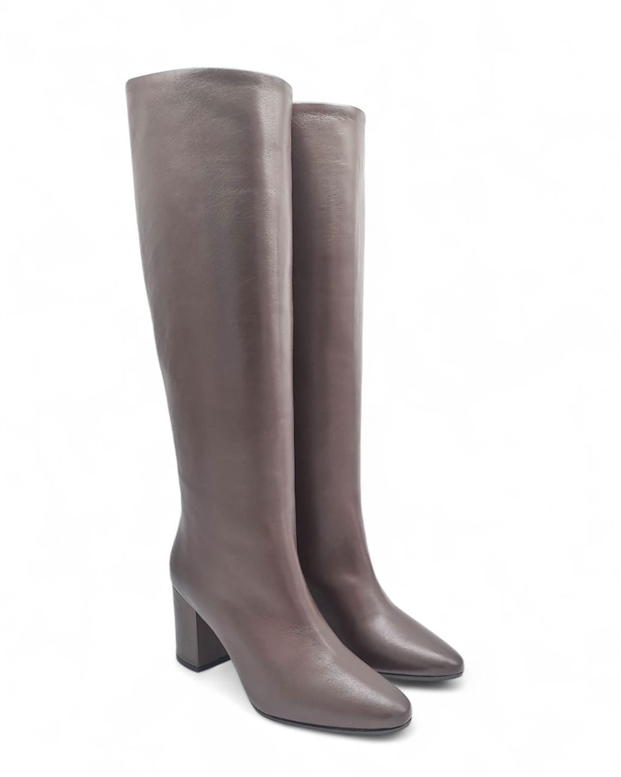 Stivali tubolare punta tonda realizzato in nappa smog .