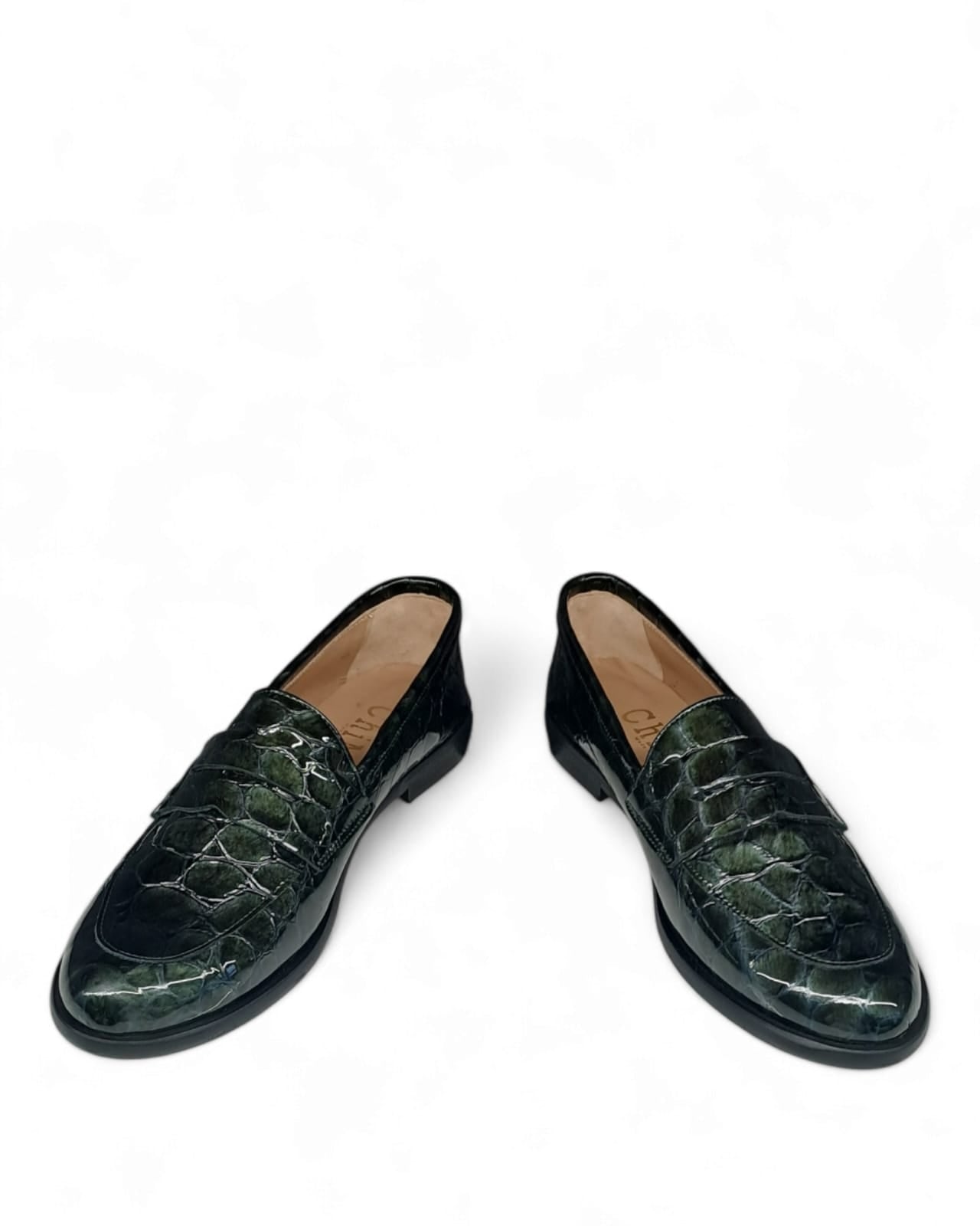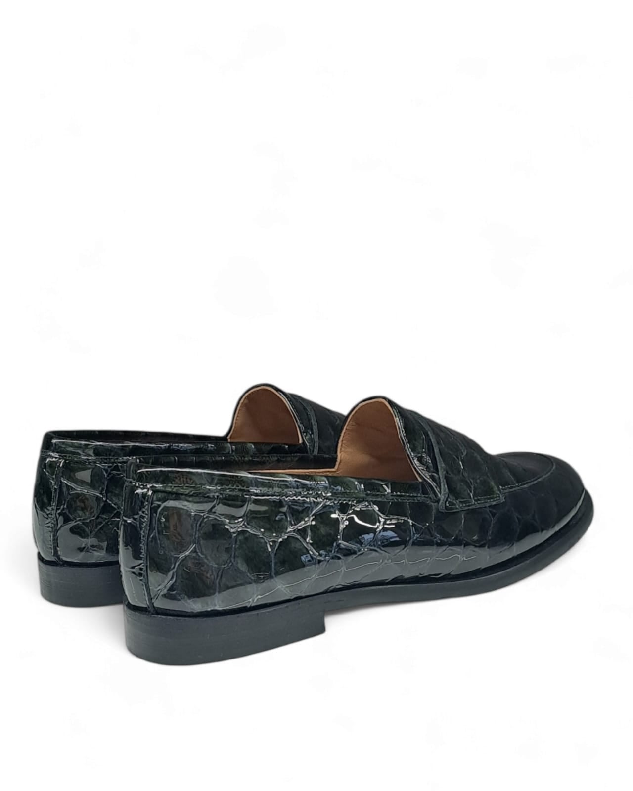 Mocassino con suola spessa e bendina in stampa coco verde .
