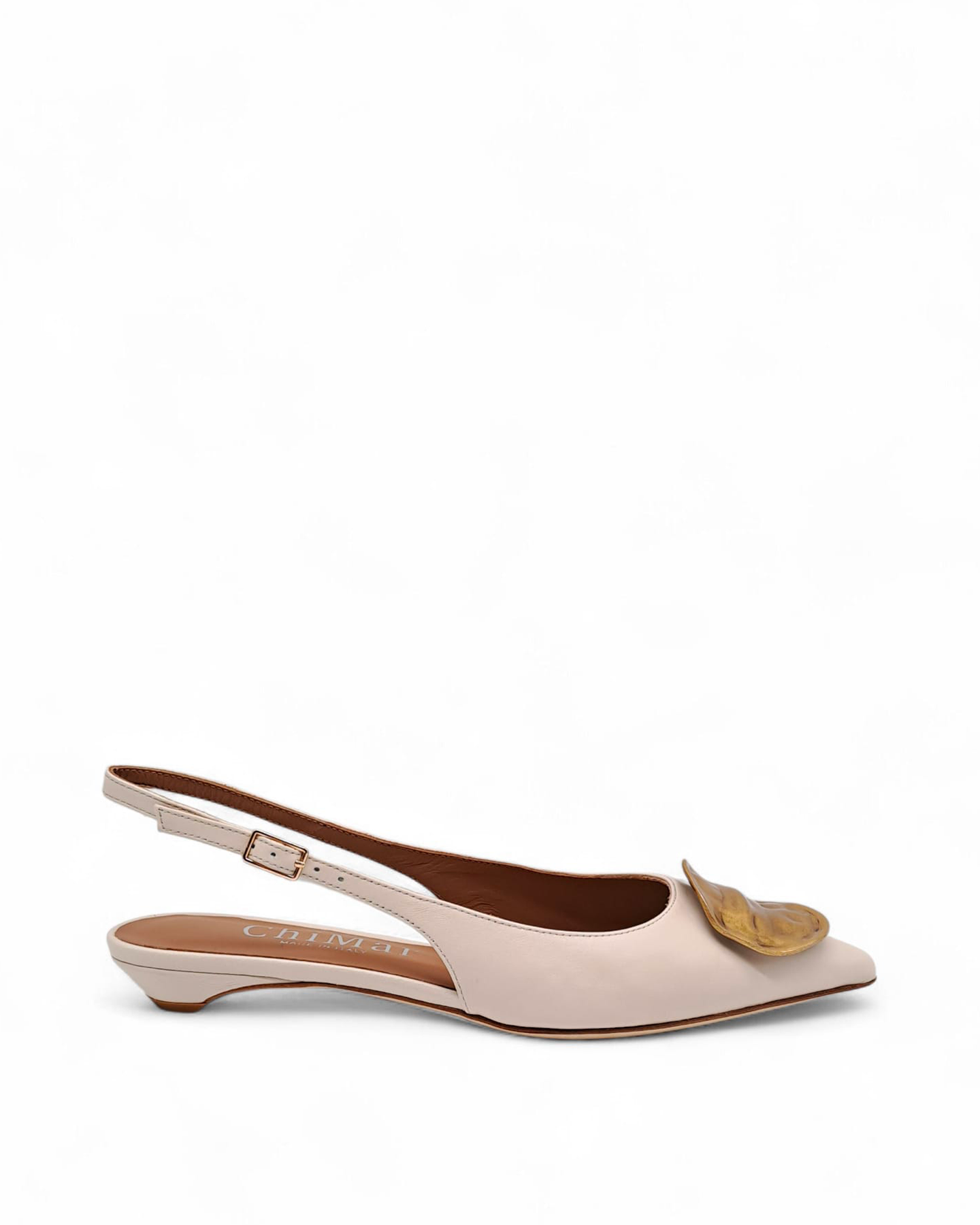 Slingback a punta in nappa milk con accessorio dorato realizzata con lavorazione " a sacchetto ".