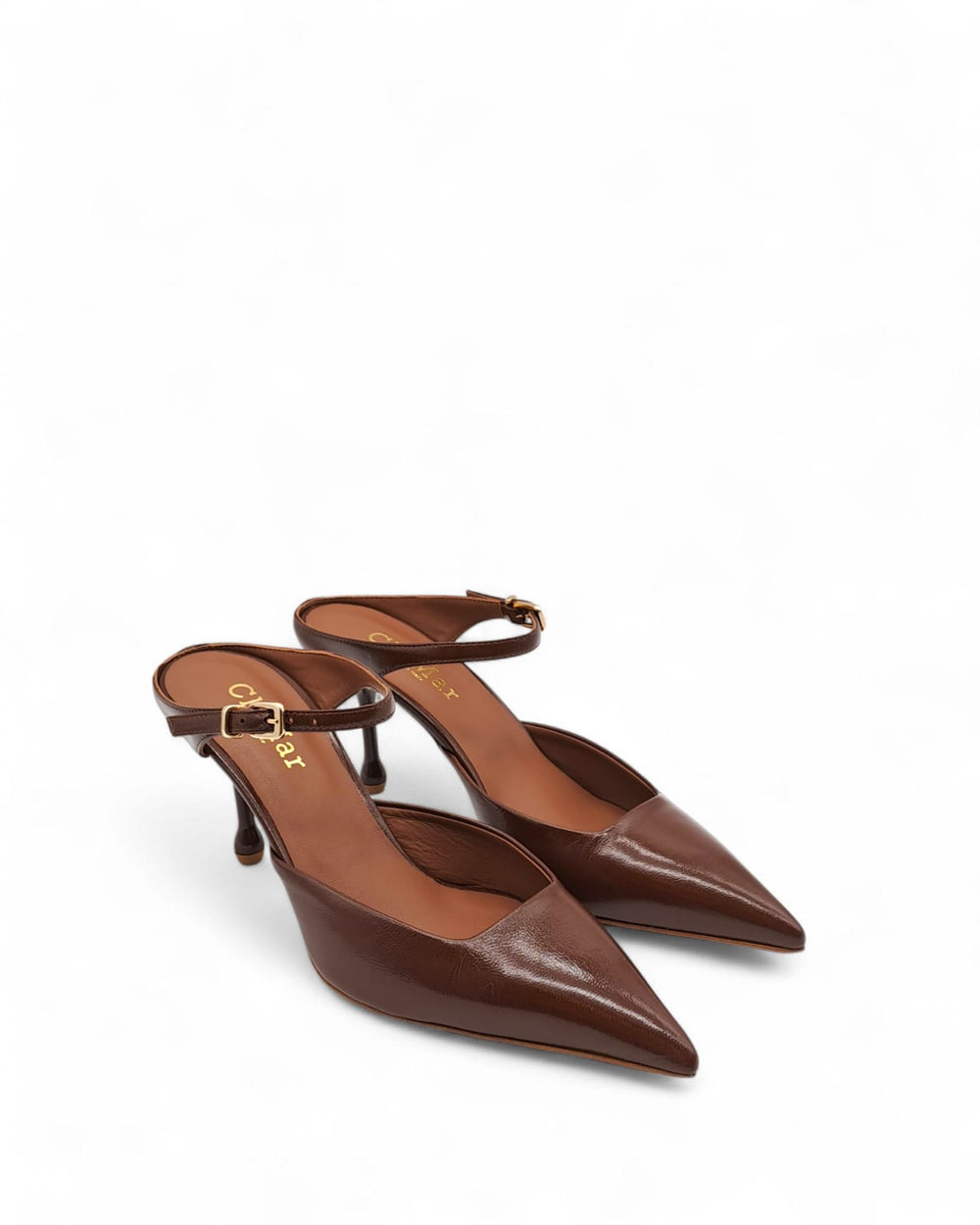 Slingback Elsa Tessuto Jeans Scuro / Cuoio
