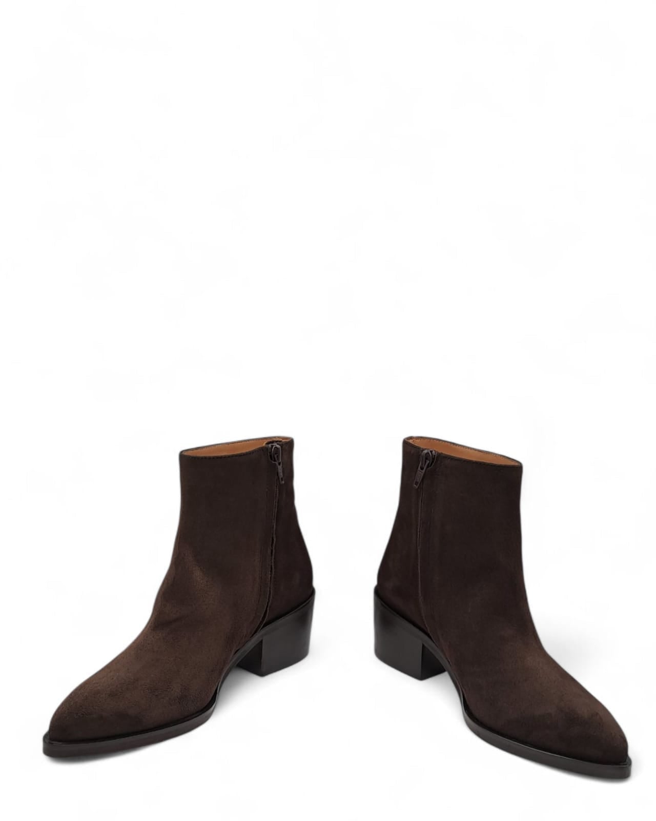 Texano realizzato in camoscio testa di moro , con cerniera laterale. . Contattaci