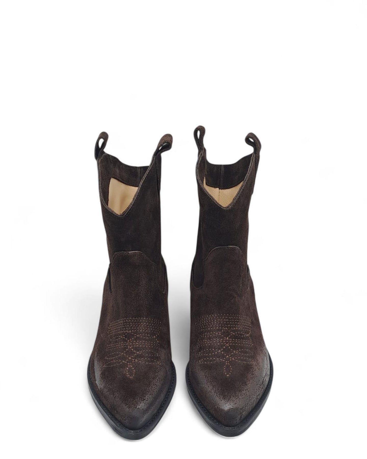 Texano basso realizzato in camoscio testa di moro con ricamo . Contattaci