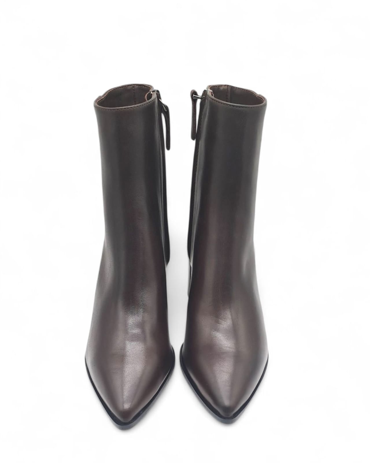 Texano a punta , lavorazione a sacchetto , realizzato in pelle testa di moro , con suola in cuoio / mezza piantina in gomma.