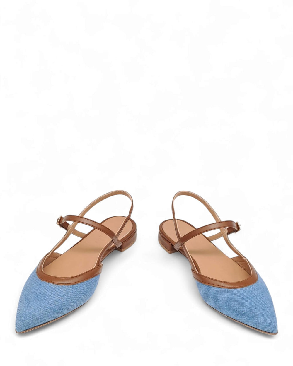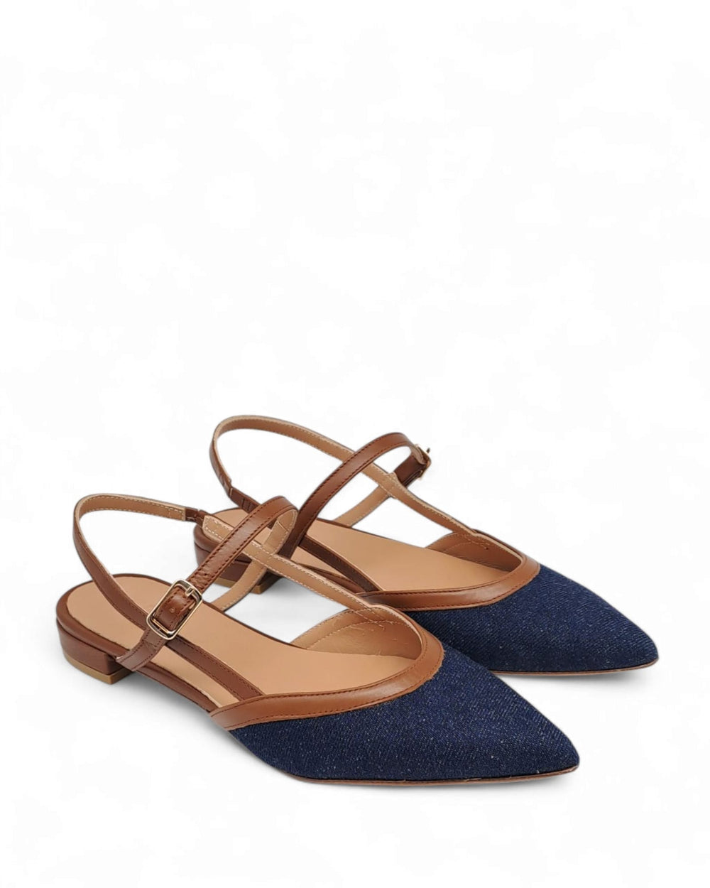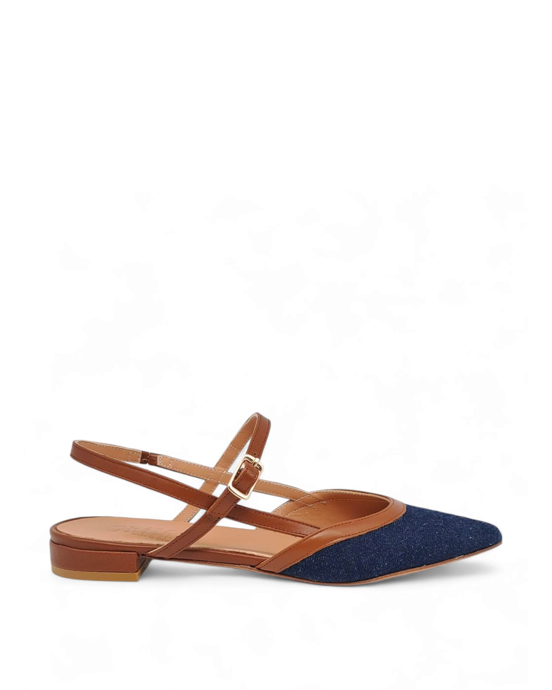 Slingback Elsa Tessuto Jeans Scuro / Cuoio